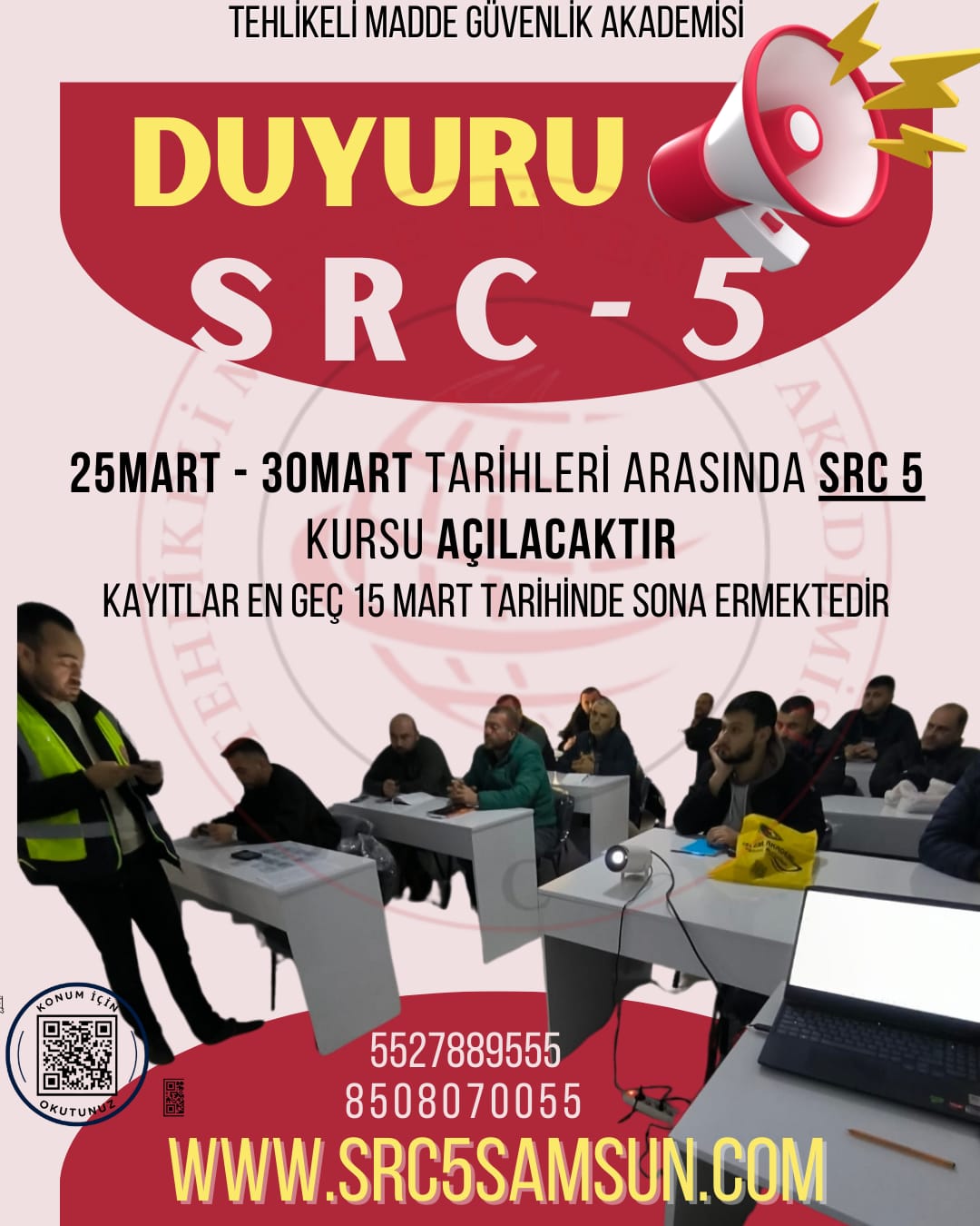 Samsun SRC5 Tehlikeli Madde Eğitim Akademisi, 15 Mart’ta yeni eğitim dönemiyle kapılarını açıyor. Tehlikeli madde taşımacılığı yapmak isteyen profesyonel sürücüler için hazırlanan SRC5 eğitimi, hem teorik hem de pratik derslerle kapsamlı bir şekilde sunulmaktadır. Eğitim programımız, tehlikeli maddelerin güvenli taşınması, yönetmeliklere uygunluk, acil durum prosedürleri ve risk yönetimi konularını içerir.